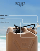 • Can be mounted on tire carrier or any jerry can mounts saving valuable interior space.